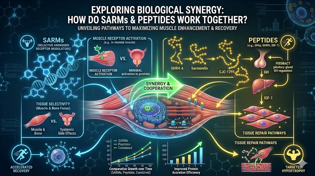 Individually, each represents a massive leap forward in pharmacology. SARMs offer targeted anabolic growth without the androgenic collateral damage of traditional steroids, while peptides act as cellular messengers to trigger profound healing, anti-aging, and metabolic processes. However, the true breakthrough in modern performance science lies in how these two categories interact.